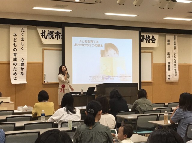 西区区別研修会は9月26日にちえりあにおいて近川樹美恵先生をお招きして、「整理収納術で子どもも自分も快適に〜子どもを育てるお片づけの5つの基本〜」をテーマに講演して頂きました。参加者は83名。先生の軽快な語り口と内容に皆さん興味深く聞き入られていました。